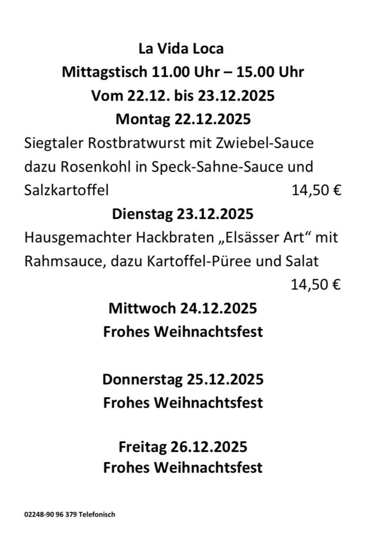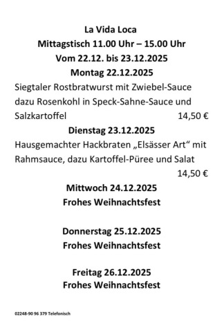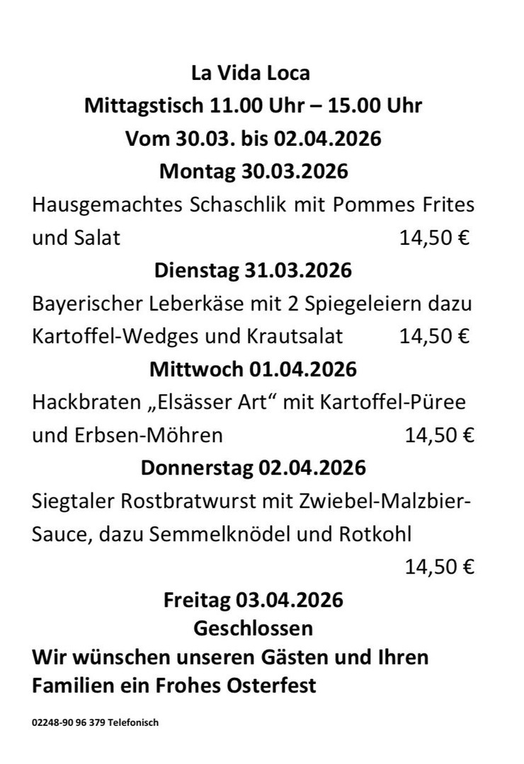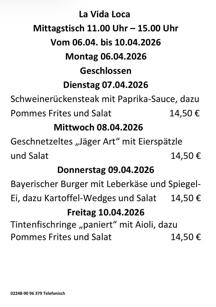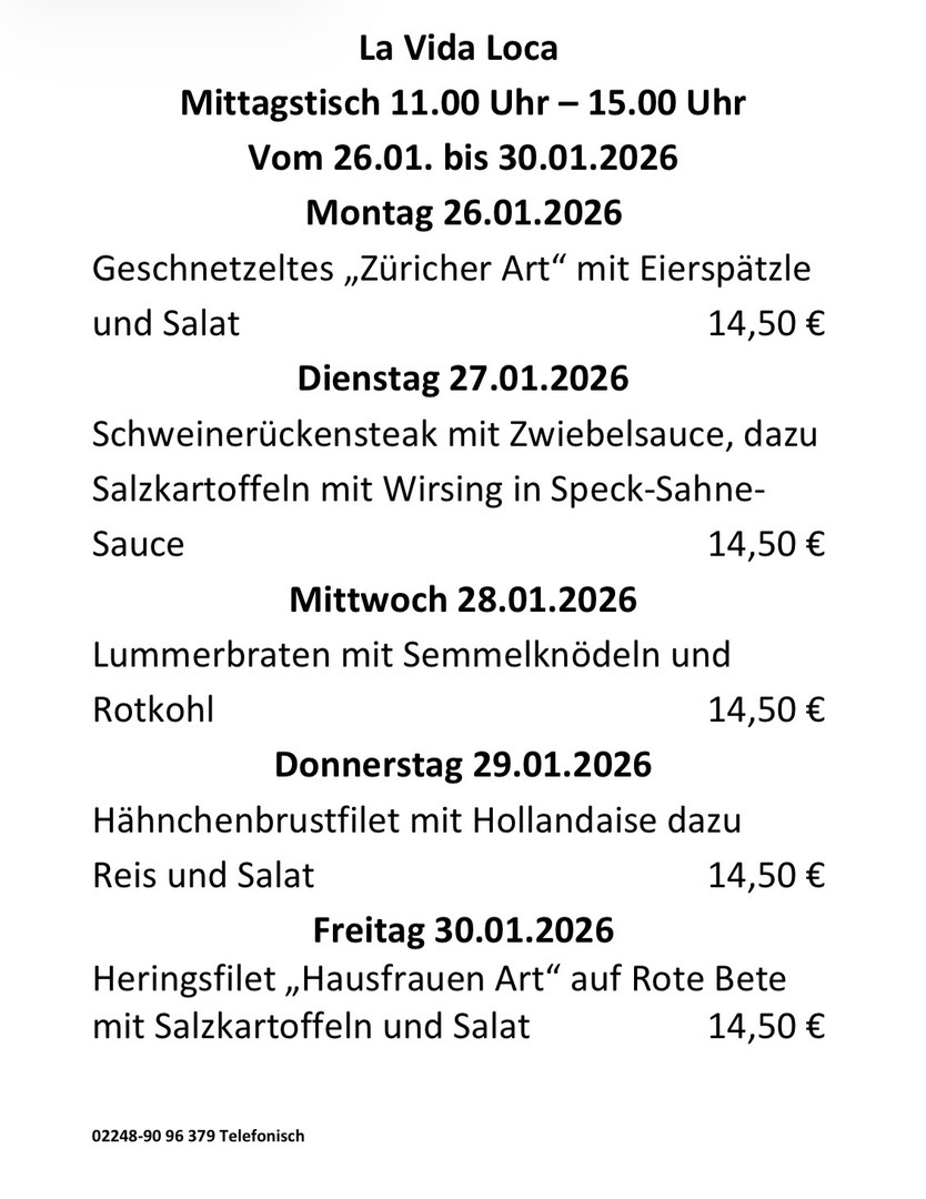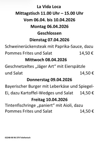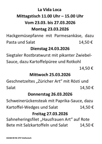 Wöchentl. wechselnder Mittagstisch in Hennef.