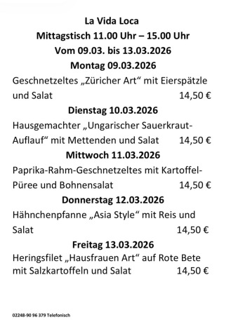 Das La Vida Loca bietet Ihnen frisch zubereitete Gerichte in einem mediterranen stilvollen Ambiente mit gemütlicher Außenterrasse. Im unserem Restaurant finden im Innenbereich bis zu 30 und auf der Terrasse ebenfalls bis zu 30 Gäste Platz. Ob Sie zum Mittagessen oder mal zwischendurch Hunger verspüren, genießen Sie unsere frischzubereiteten Speisen bei uns im Restaurant oder gut verpackt zu Hause bzw. im Büro.